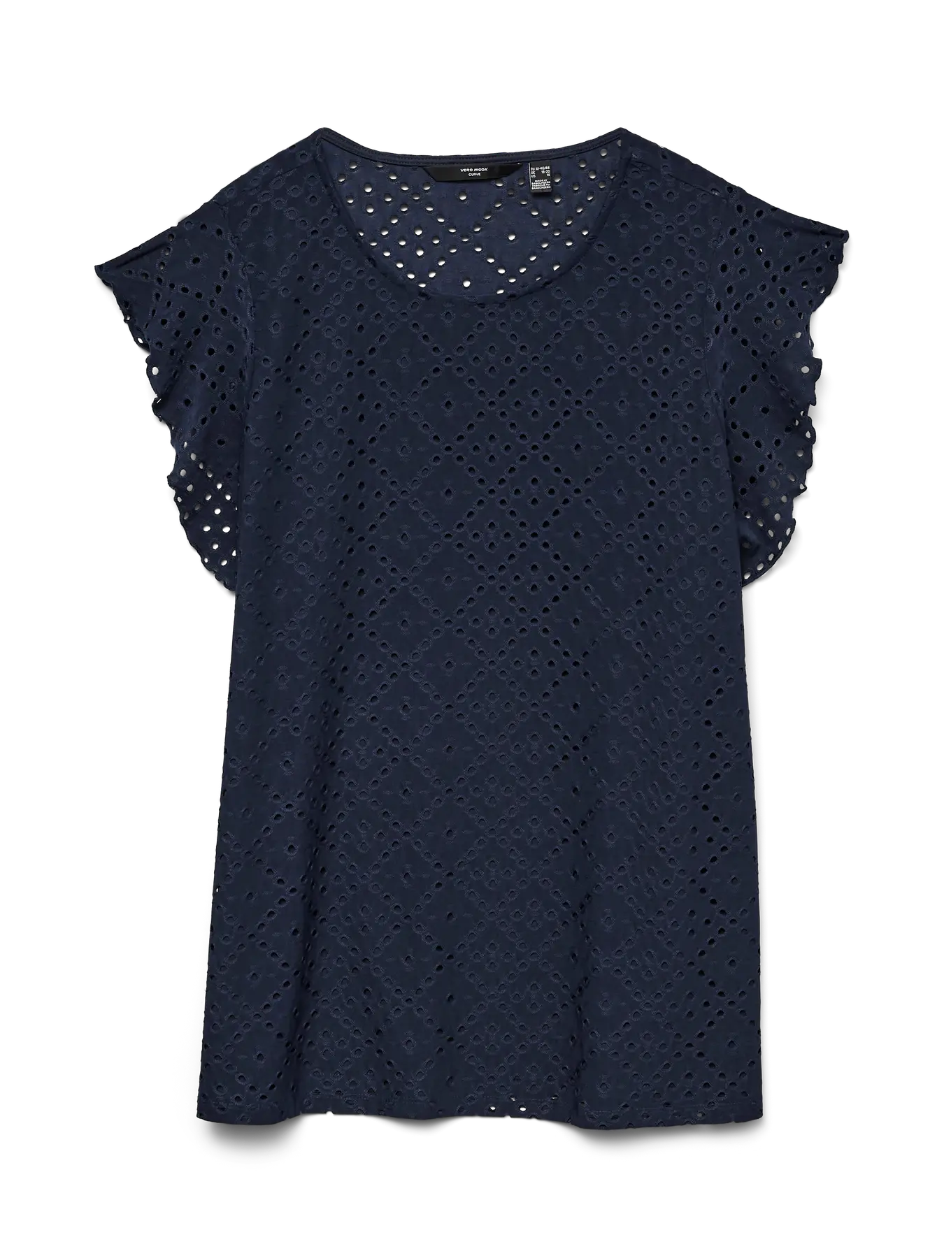 Deze elegante top van Vero Moda combineert een tijdloze uitstraling met een luchtig en vrouwelijk ontwerp dat perfect past binnen moderne plussize fashion. De diepe donkerblauwe kleur geeft het geheel een stijlvolle en verfijnde uitstraling, terwijl het subtiele broderiepatroon een speels en luxueus detail toevoegt. De opengewerkte structuur van de stof creëert een licht en zomers effect dat meteen karakter geeft aan dit veelzijdige kledingstuk. Voor vrouwen die op zoek zijn naar modieuze grote maten dameskleding waarin comfort en stijl samenkomen, is dit een prachtige keuze.