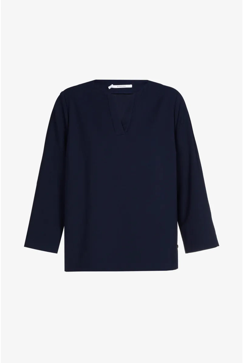 Kies voor stijlvolle eenvoud en draagcomfort met deze navy blouse van Xandres, een elegant kledingstuk dat moeiteloos past in elke garderobe.