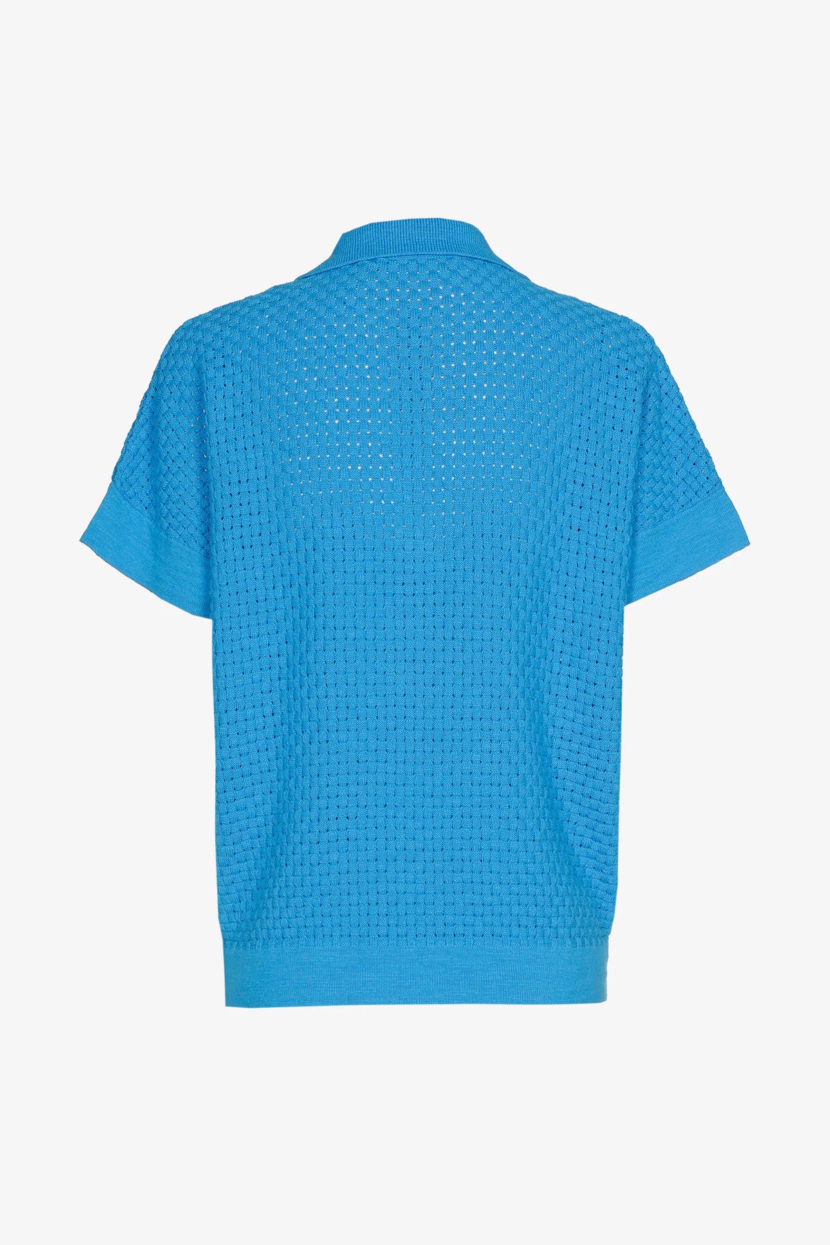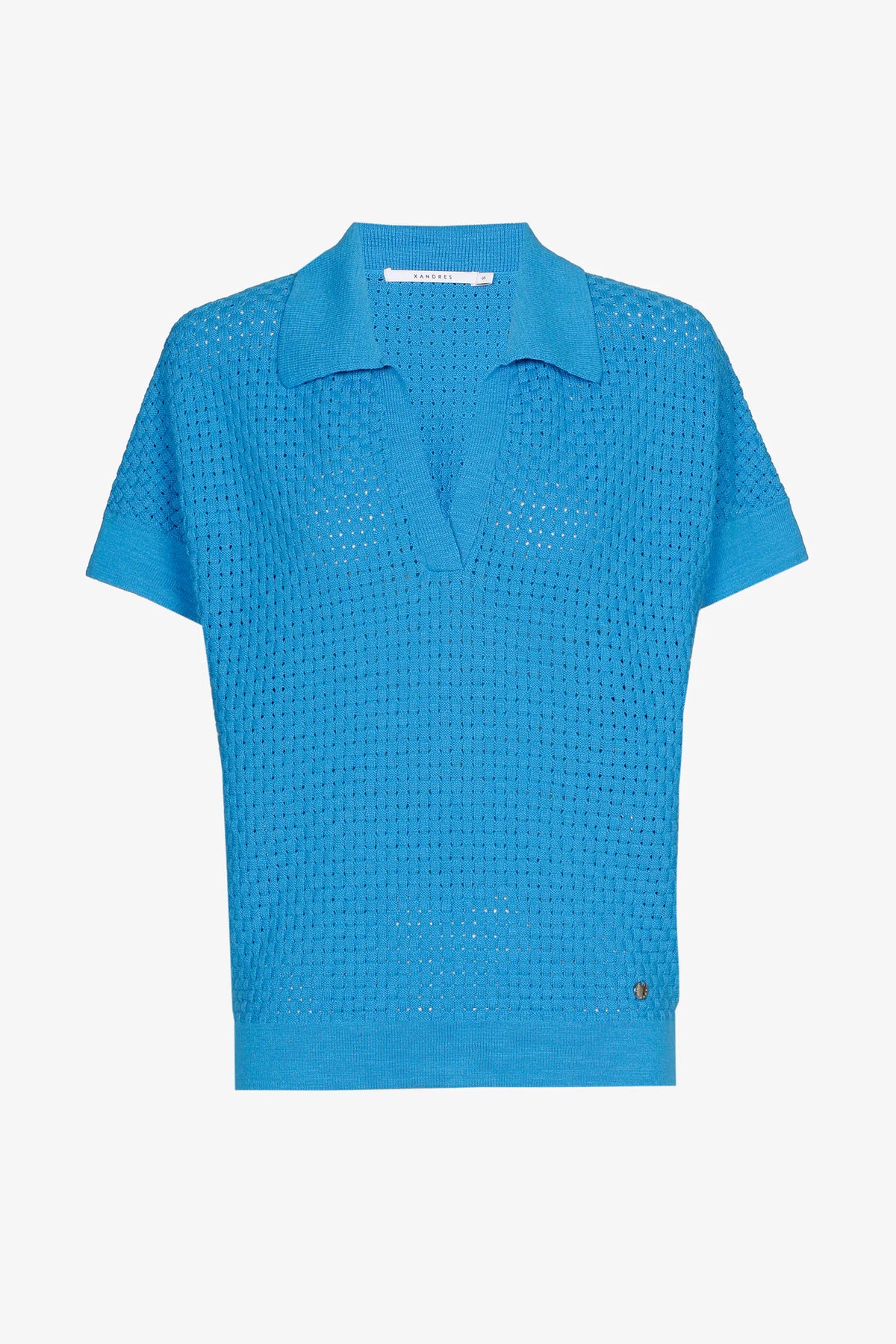 Deze luchtige, fijngebreide polotrui van Xandres is de ultieme zomertopper voor wie houdt van stijl met comfort. De levendige blauwtint geeft elke outfit een frisse uitstraling, terwijl de gehaakte textuur een speelse, luchtige toets toevoegt. Dankzij de open structuur oogt deze trui niet alleen modern en eigentijds, maar voelt ze ook heerlijk ademend aan op warme dagen.