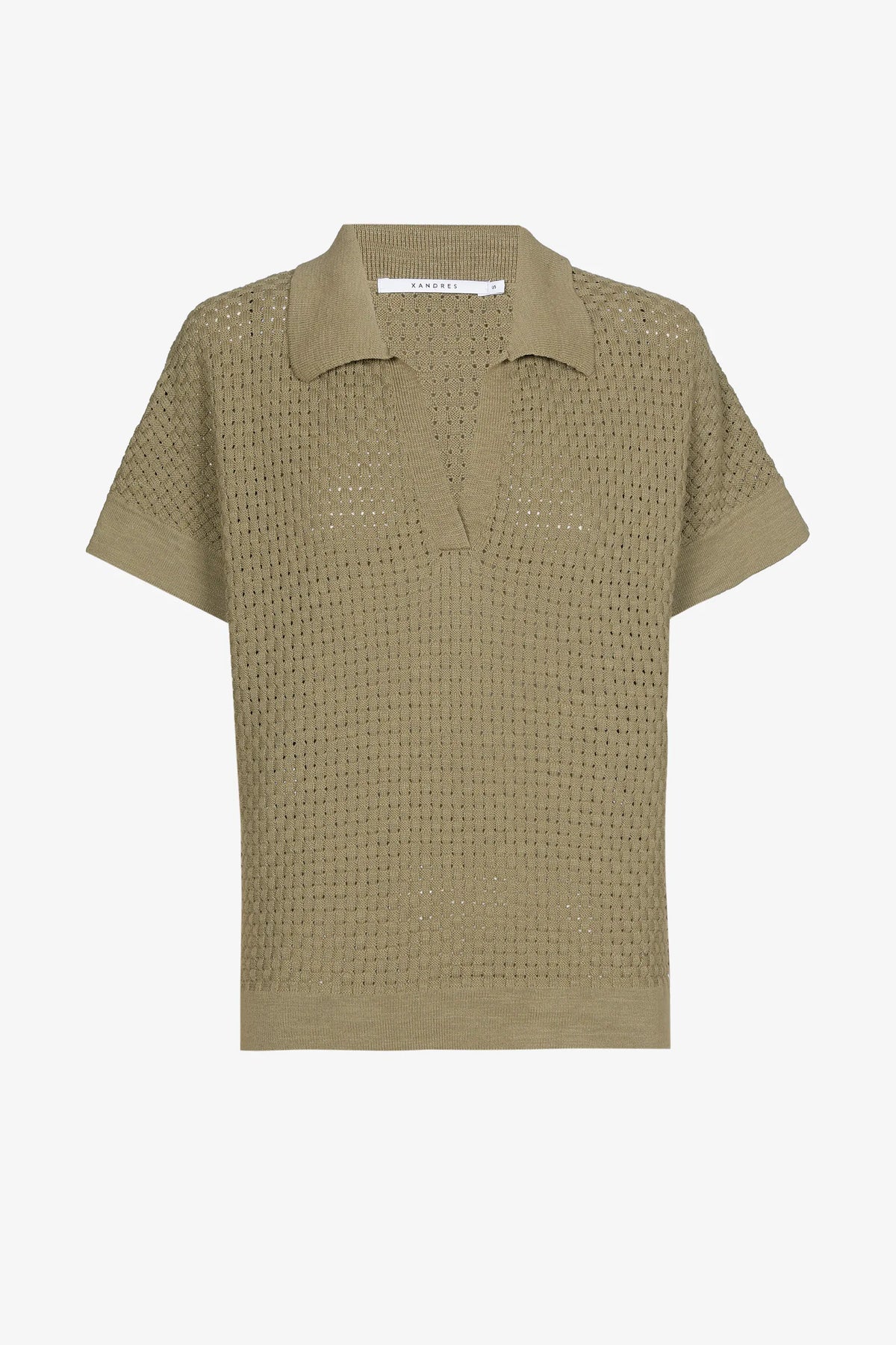 Deze luchtige, fijngebreide polotrui van Xandres is de ultieme zomertopper voor wie houdt van stijl met comfort. De tijdloze kaki tint geeft elke outfit een frisse uitstraling, terwijl de gehaakte textuur een speelse, luchtige toets toevoegt. Dankzij de open structuur oogt deze trui niet alleen modern en eigentijds, maar voelt ze ook heerlijk ademend aan op warme dagen.
