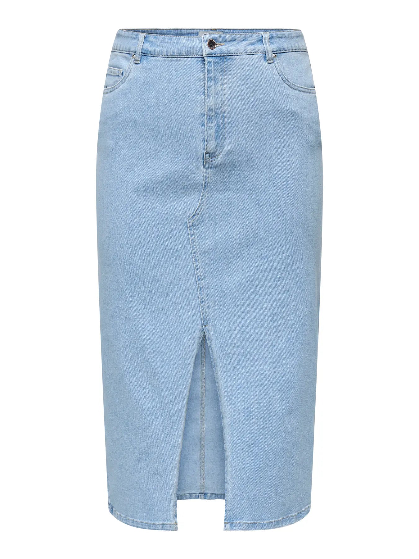 Breng een tijdloze klassieker terug in je garderobe met deze denim kokerrok van only carmakoma, speciaal ontworpen voor vrouwen met een maatje meer. Deze rok combineert een vrouwelijke snit met een stoere denim look, perfect binnen de nieuwste trends in plussize mode. De klassieke blauwe wassing, het hoge taillemodel en de split aan de voorkant geven deze jeansrok een moderne, flatterende uitstraling die geschikt is voor talloze gelegenheden.