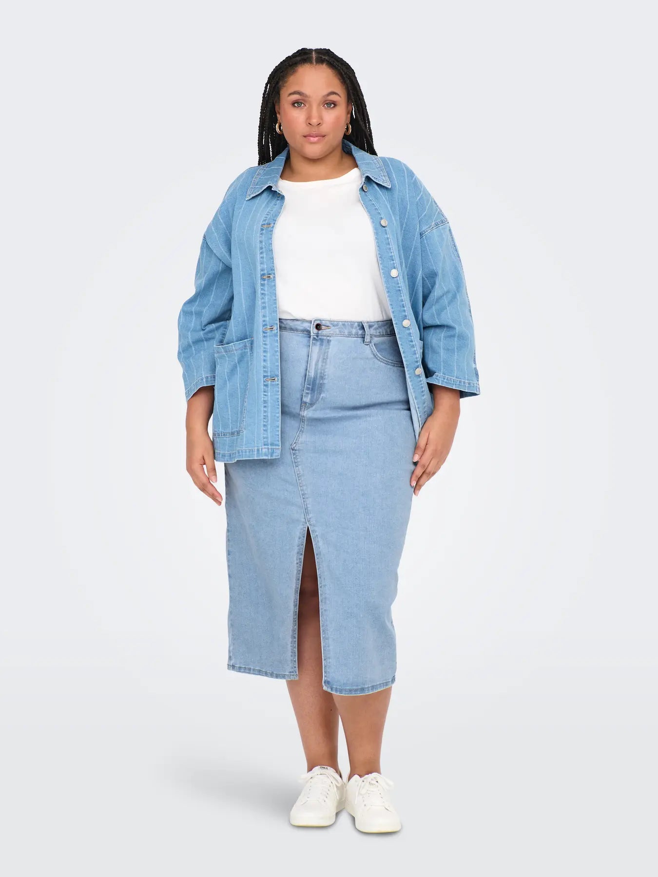 Only carmakoma staat bekend om haar modieuze, betaalbare én flatterende collecties voor curvy vrouwen, en deze jeansrok is daar een schoolvoorbeeld van. Of je hem nu draagt met een grafisch T-shirt en sneakers voor een casual streetstyle look, of combineert met een blouse en hakken voor een vrouwelijke en verfijnde uitstraling, deze rok past zich moeiteloos aan jouw stijl aan.