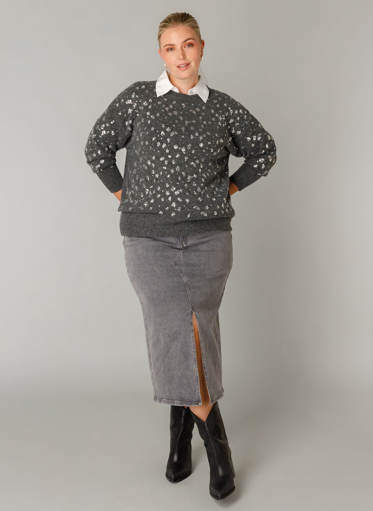 Ga voor een stoere en vrouwelijke look met deze grijze denim kokerrok van Yest Curve – hét kledingstuk dat plussize mode een moderne update geeft. Deze rok combineert het comfort van stretchdenim met de flatterende pasvorm van een klassieke kokerrok. Het resultaat? Een veelzijdige essential voor elke vrouw met een maatje meer die houdt van stijl én gemak.