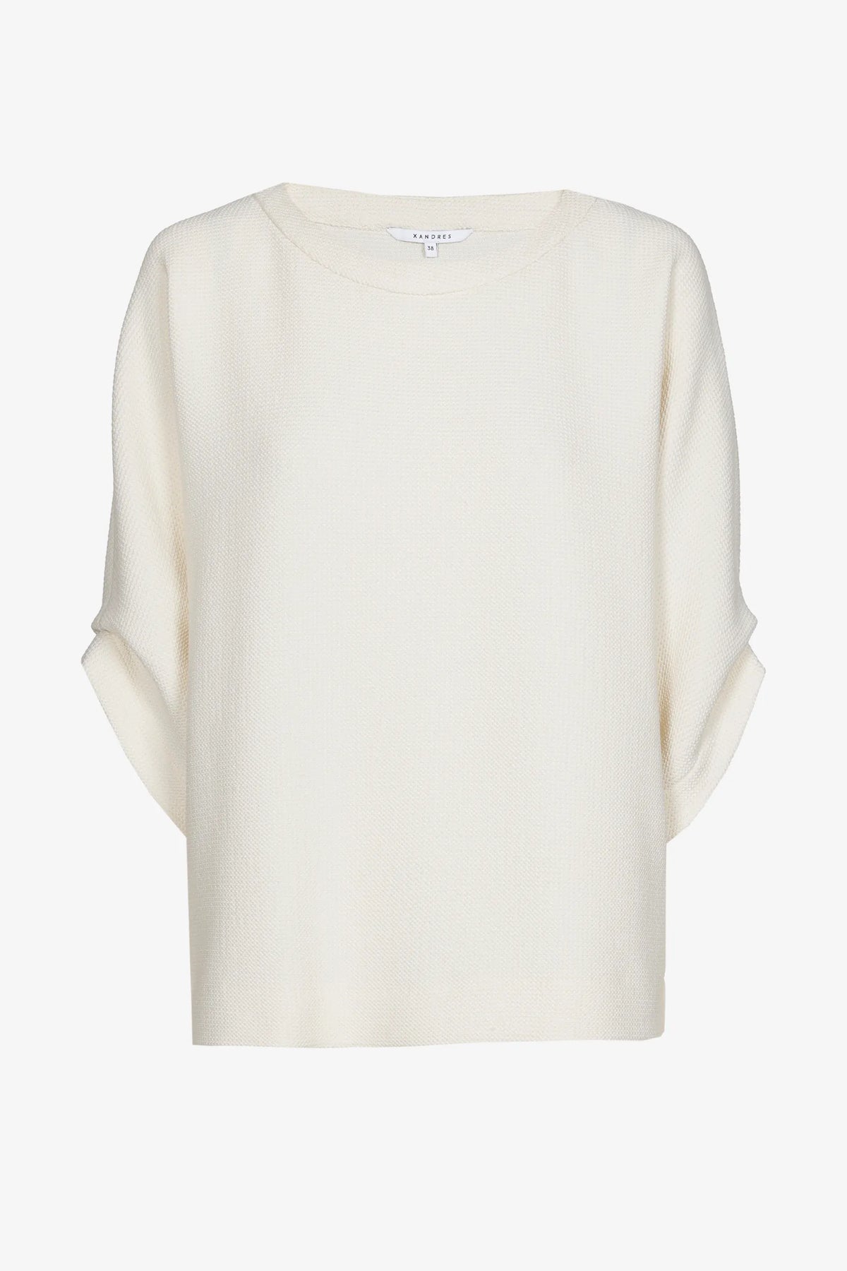 Dankzij de aangesneden mouw creëert het shirt een moeiteloos silhouet dat flatteert zonder schoudernaden, ideaal voor wie houdt van een relaxte, vrouwelijke fit. Het subtiele geplooide detail aan de mouw en de verfijnde halsafwerking zorgen voor een stijlvol accent dat het verschil maakt.