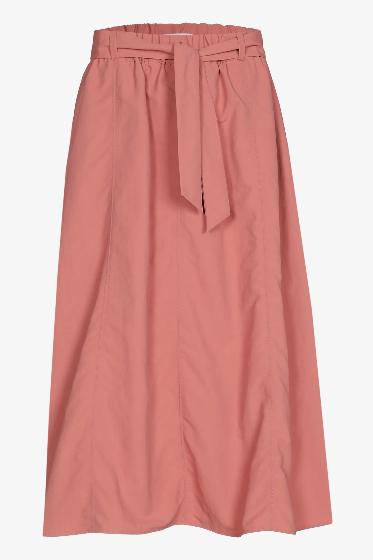 De taille is afgewerkt met een comfortabele elastiek aan de rugzijde en een brede strikceintuur aan de voorzijde, wat zorgt voor een flatterend effect en een perfecte pasvorm. De lengte van de rok valt mooi tot onderaan de kuiten — lang, maar niet tot op de enkels — waardoor hij zowel gekleed als casual gestyled kan worden.