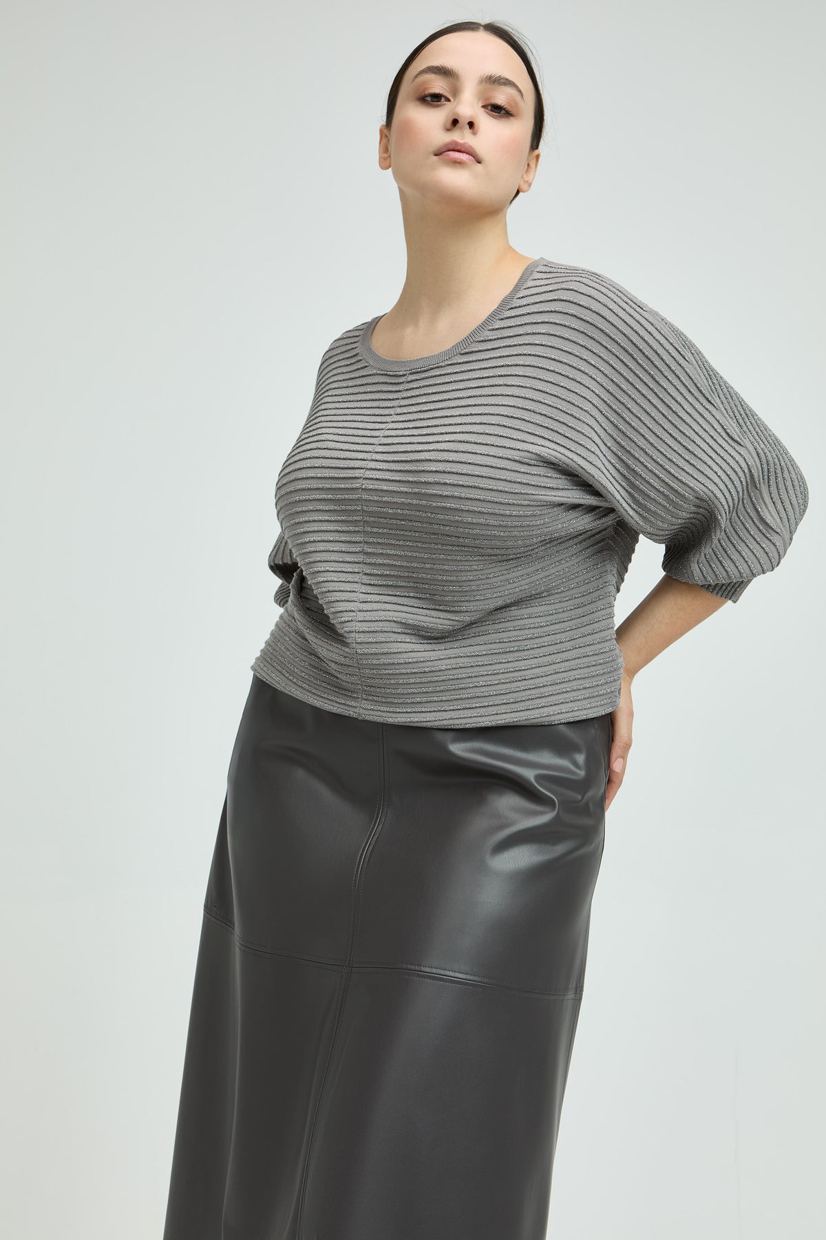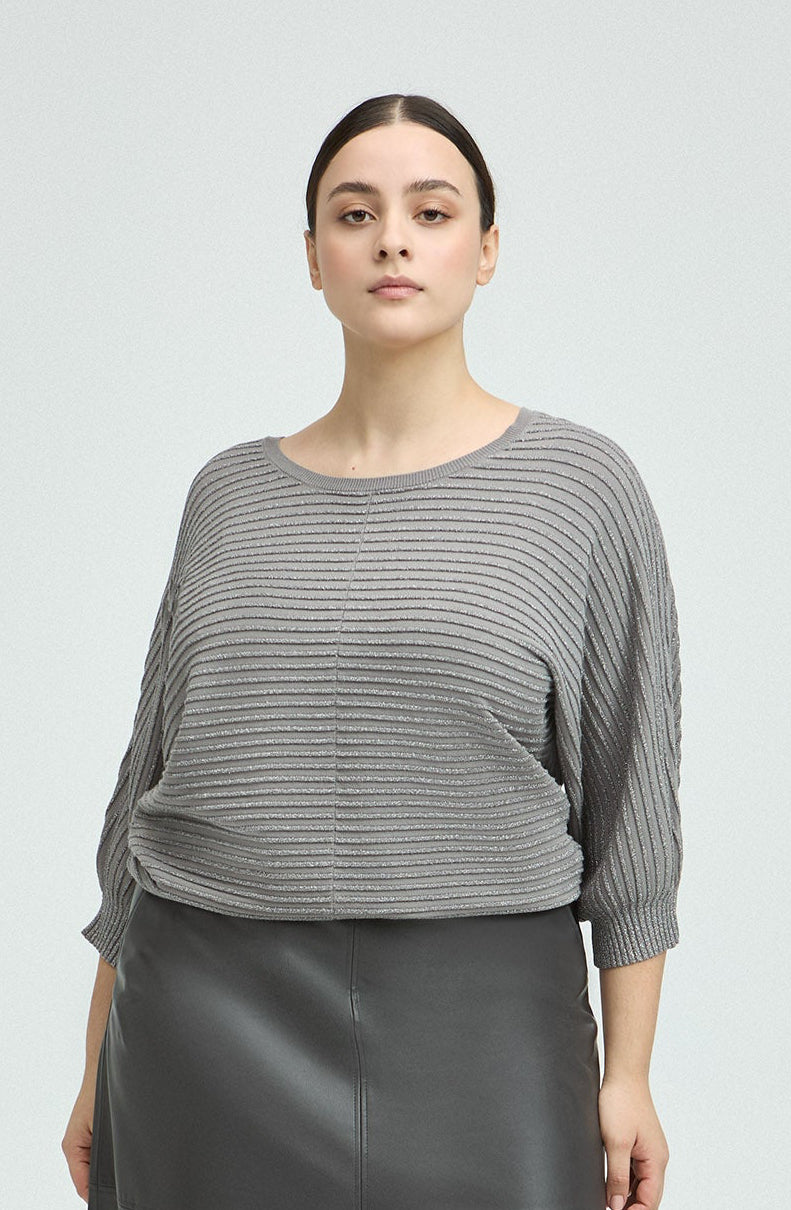 Deze verfijnde trui met grafietkleurige lurexstrepen is een stijlvolle herinterpretatie van een geliefd model uit eerdere Xandres-collecties. De horizontale strepen creëren een visueel slank silhouet en zorgen voor een flatterende pasvorm die elke vrouw doet stralen. De glanzende lurexdraad is subtiel verweven in de stof, wat de trui een geraffineerde sprankeling geeft zonder opdringerig te zijn. De zachte viscoseblend (68% viscose, 21% polyamide en 11% metaal) voelt comfortabel aan op de huid en behoudt zijn vorm, zelfs na meerdere wasbeurten. Deze Xandres trui is ontworpen met een iets lossere fit en driekwartmouwen, waardoor hij moeiteloos combineert met zowel een casual jeans als een elegante rok. Dankzij de grafietkleur straalt hij een tijdloze klasse uit en vormt hij een perfect alternatief voor neutrale basistinten. Ideaal voor vrouwen die houden van dameskleding grote maten met net dat tikkeltje extra. De lurexdetails tillen deze trui naar een hoger niveau, waardoor je look altijd iets feestelijks uitstraalt – zelfs op gewone dagen. De trui ademt het DNA van Xandres: Belgisch design, luxueuze materialen en een feilloze afwerking. Combineer hem met andere Xandres stuks zoals een leather look rok of een pantalon voor een complete outfit die comfort en stijl naadloos met elkaar verbindt. Het model is bovendien ideaal voor dames die houden van comfortabele plussize kleding waarin ze zich tegelijk vrouwelijk en krachtig voelen. Deze trui is meer dan een kledingstuk: het is een garderobefavoriet in wording, klaar om jouw stijl dagelijks te versterken. De trui is onderdeel van een exclusieve collectie die inspeelt op de noden van moderne vrouwen die stijlvol door het leven willen gaan, ongeacht maat of gelegenheid.