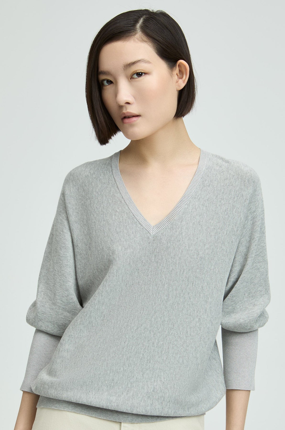 Voor wie op zoek is naar de ultieme combinatie van comfort, zachtheid en eenvoud, is deze zachte trui van Xandres een absolute must-have. De trui is vervaardigd uit een luxueuze blend van 84% organic cotton, 14% viscose en 2% elastaan, wat zorgt voor een heerlijk natuurlijke draagervaring met net dat tikkeltje stretch voor extra comfort. De lichtgrijze kleur oogt fris en tijdloos, waardoor deze trui eindeloos te combineren valt met andere stukken uit je garderobe. Dankzij de elegante V-hals en lange mouwen met brede manchetten straalt dit model een subtiele klasse uit die past bij elke gelegenheid. Draag hem casual op een jeans of combineer met een geklede broek of rok voor een verfijnde look met een moderne twist. Xandres staat al jaren bekend om zijn verfijnde damesmode en dit item bewijst opnieuw waarom. De trui voelt niet alleen aangenaam zacht aan op de huid, maar heeft ook een prachtige pasvorm die flatterend is voor elk figuur. Voor vrouwen die houden van stijl én comfort, is dit een item dat niet mag ontbreken. Speciaal voor wie dameskleding grote maten waardeert, biedt deze trui voldoende bewegingsvrijheid zonder in te boeten aan elegantie. De natuurlijke vezels maken dit kledingstuk bovendien ademend en duurzaam, wat perfect aansluit bij de moderne bewuste garderobe. Of je nu gaat voor een dag op kantoor, een casual brunch met vriendinnen of een relaxte wandeling door de stad, met deze trui van Xandres ben je steeds stijlvol en comfortabel gekleed. En als je de look compleet wilt maken, combineer dan met andere stuks uit de Xandres collectie voor een perfect afgestemd ensemble. Laat je inspireren door de tijdloze klasse van dit merk dat dameskleding grote maten een nieuwe dimensie geeft. Bestel vandaag nog en ervaar zelf het verschil van Xandres.