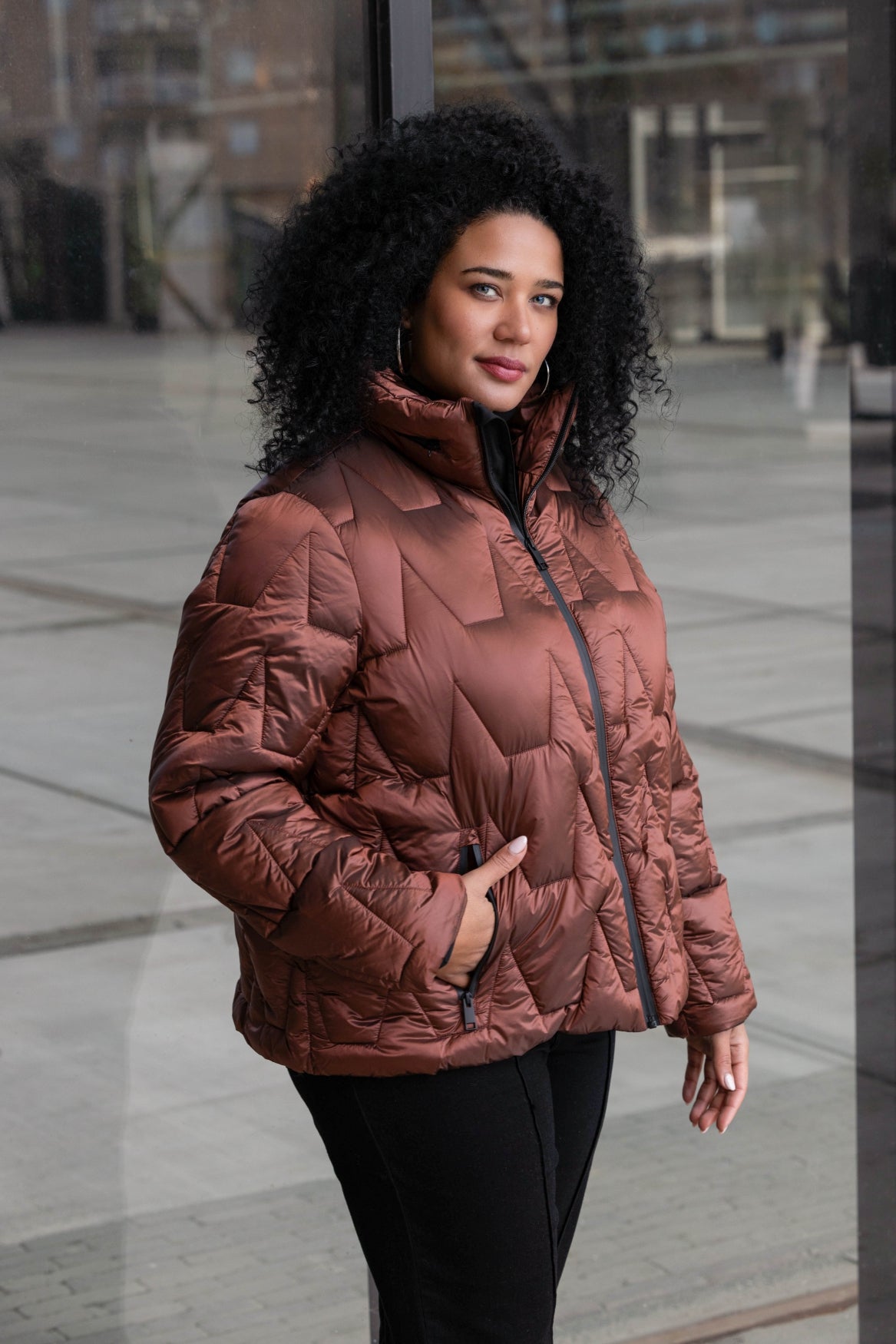 Dit roest metallic bomberjack van Yest Curve is een perfecte keuze voor wie deze winter warm én stijlvol voor de dag wil komen. Het doorgestikte design en de korte, moderne snit geven dit jasje een eigentijdse uitstraling die makkelijk te combineren is met verschillende outfits. Dankzij de roest coating oogt het net dat tikkeltje specialer dan een standaard donsjack, zonder schreeuwerig te zijn. De comfortabele pasvorm in combinatie met de lichte vulling van imitatie dons zorgt ervoor dat je het behaaglijk warm hebt, zonder dat het jasje zwaar aanvoelt.