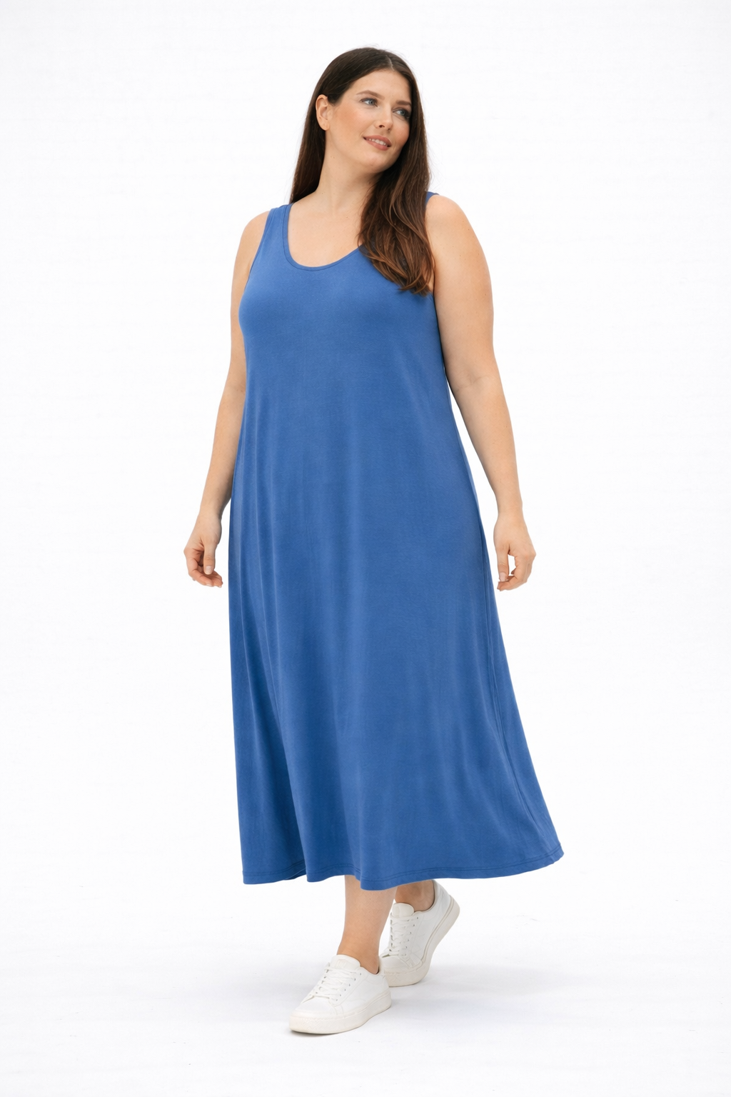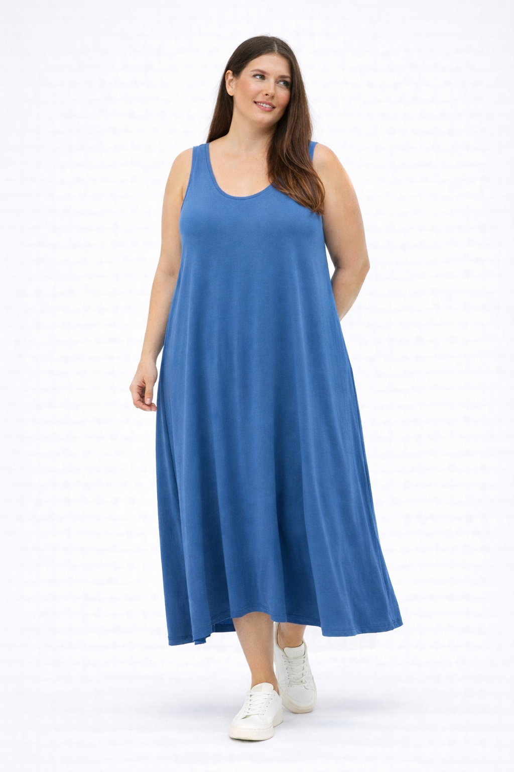 De lange lengte en subtiele high-low zoom versterken de curvy stijl op een elegante manier en zorgen voor een mooi silhouet bij kleding voor vrouwen met rondingen. Tot maat 48 valt deze jurk prachtig los en comfortabel. In grotere maten kan het model iets meer aansluiten rond het lichaam, afhankelijk van je lichaamsvorm en hoe je de jurk graag draagt. Mat fashion staat bekend om stijlvolle mode voor curvy vrouwen en ook dit ontwerp bewijst hoe krachtig een goede basis kan zijn.