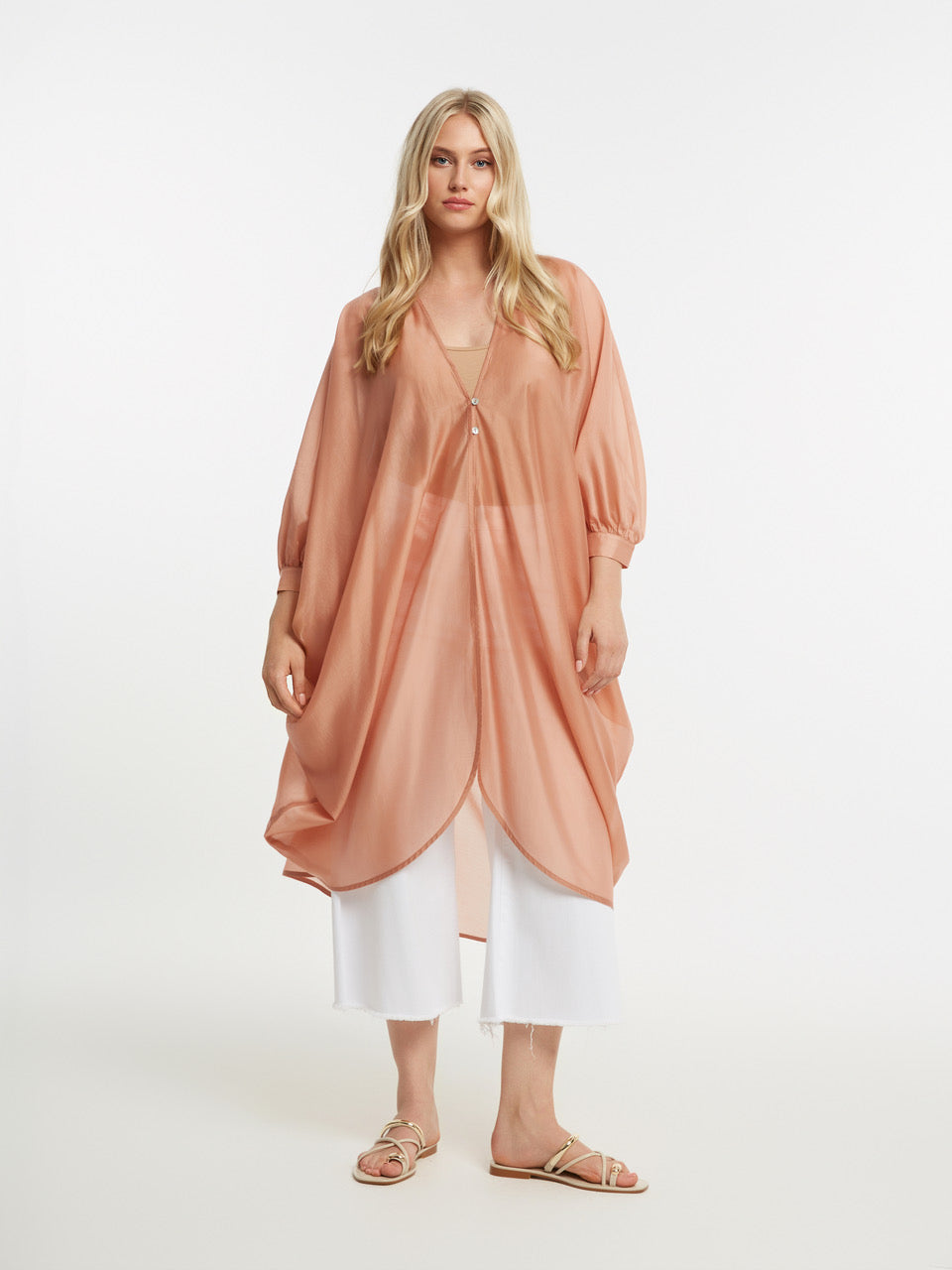 Deze grote maten dameskleding is perfect voor elke gelegenheid: draag haar nonchalant open over een top en broek voor een casual strandlook of dichtgeknoopt met een opvallend accessoire voor een diner bij zonsondergang. Dankzij de transparante afwerking is dit stuk bijzonder mooi te combineren met een bijpassende onderjurk, een linnen broek of zelfs als laagje over een badpak – een veelzijdige must-have voor de zomergarderobe.