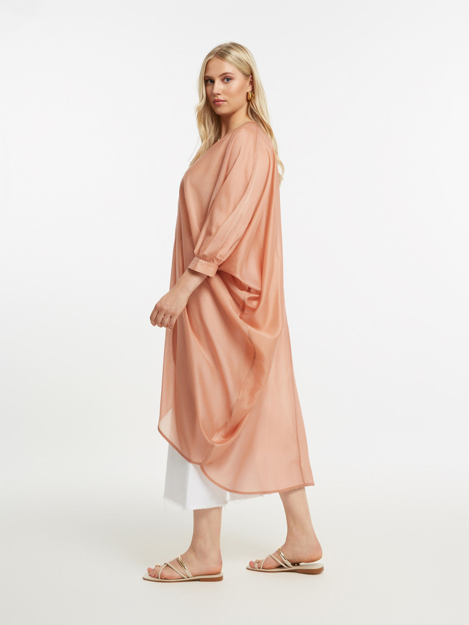 Laat je stijl deze zomer ademen met deze prachtige tuniekjurk van Mat Fashion, uitgevoerd in een zachte perzikkleurige tint die jouw huid laat stralen. De tuniek is vervaardigd uit een luchtige mix van 85% lyocell en 15% polyester, wat zorgt voor een luxueuze lichtheid en een subtiele glans. Lyocell staat bekend om zijn ademend vermogen en zachtheid op de huid, terwijl polyester bijdraagt aan de duurzaamheid en vormvastheid van het ontwerp. Dankzij deze combinatie voelt het item niet alleen aangenaam koel aan op warme dagen, maar blijft het ook mooi in model, was na was.