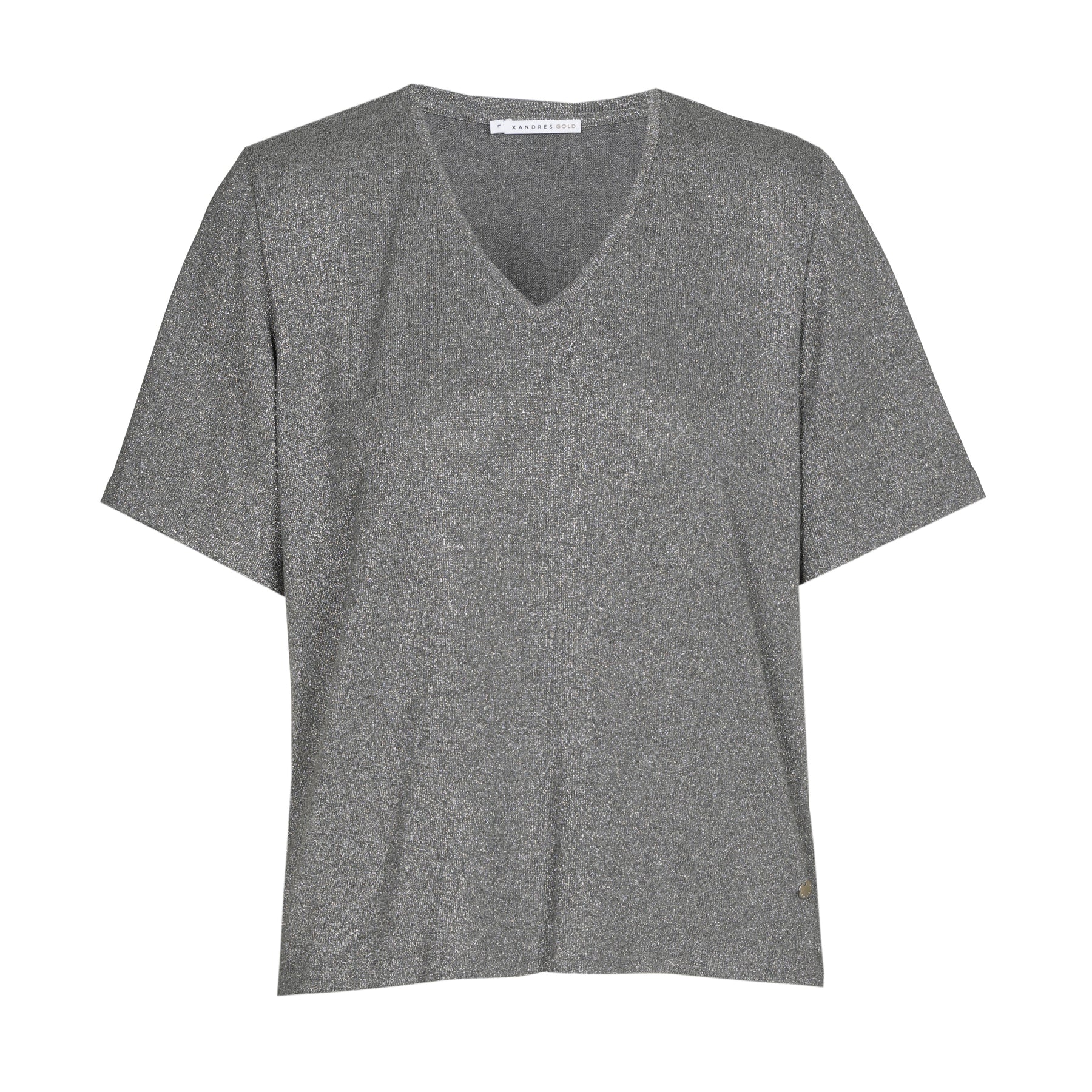 Breng een subtiele glans in je garderobe met dit zilvergrijze sparkle jersey T-shirt van Xandres, uitgevoerd in een soepelvallende en zachte rayonmix. De combinatie van 79% viscose, 13% polyester en 7% metaal zorgt voor een comfortabele pasvorm met een elegante metallic finish, waardoor dit T-shirt zowel geschikt is voor casual looks als voor feestelijke gelegenheden. De V-hals en rechte snit flatteren elk figuur en maken dit een perfecte keuze binnen de collectie dameskleding grote maten. Dankzij de verfijnde glans in de stof straalt het T-shirt iets luxueus uit, zonder in te boeten aan comfort of draagbaarheid. Het ontwerp is bewust eenvoudig gehouden, zodat je eindeloos kunt combineren – met een blazer en pantalon voor een chique look of met een jeans en sneakers voor een nonchalante citystyle. De kwaliteit en pasvorm waar Xandres bekend om staat, maken dit plussize kledingstuk tot een onmisbare basic met een sprankelend accent. Draag het T-shirt als stijlvol statement of als subtiele blikvanger onder een gilet of vest, en ervaar elke dag opnieuw de kracht van eenvoud met een twist. Of je nu kiest voor een ingetogen outfit of een expressieve combinatie, dit shirt tilt je look gegarandeerd naar een hoger niveau. Dameskleding grote maten mag stralen, en met dit Xandres T-shirt straal jij gegarandeerd mee.